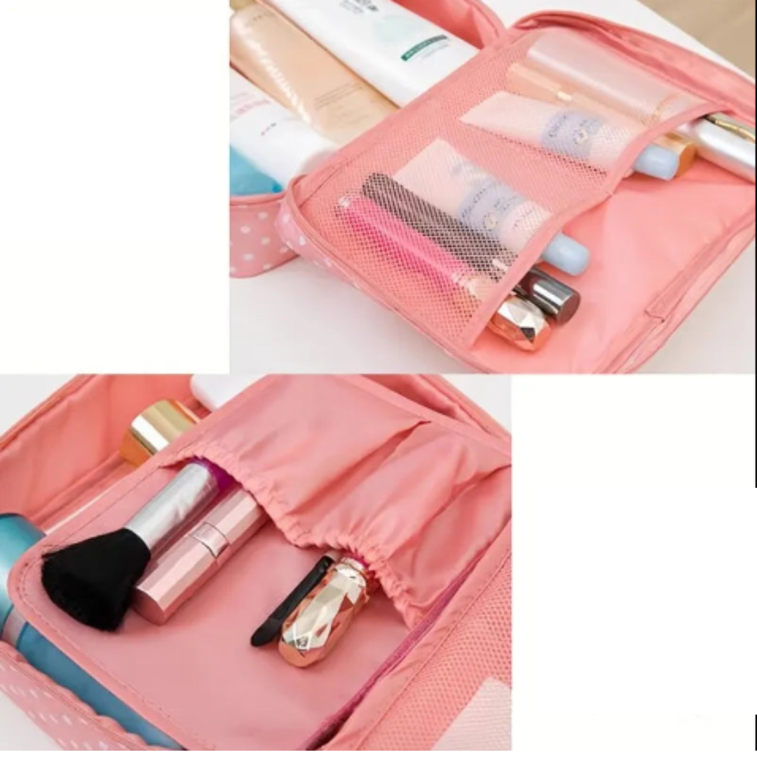 Facilite sua rotina com organização e estilo. Adquira agora a Bolsa de Maquiagem Portátil e tenha seus itens essenciais sempre bem guardados e ao alcance!